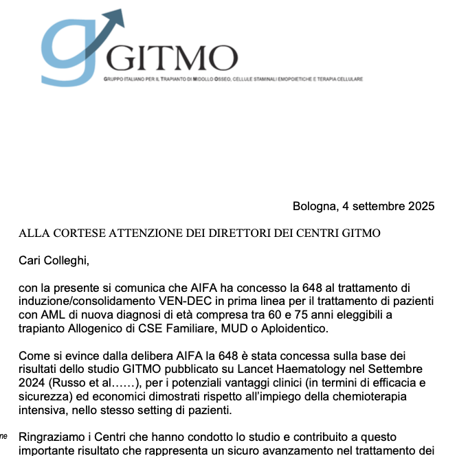 Comunicazione GITMO in merito all'inserimento in l. 648/1996 farmaco venetoclax